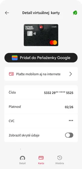 Ešte kartu k pôžičke nevyužívate? Virtuálna karta už na vás čaká v našej mobilnej aplikácii. Za pár sekúnd si ju aktivujete a platenie s ňou je pohodlné a úplne bezpečné.