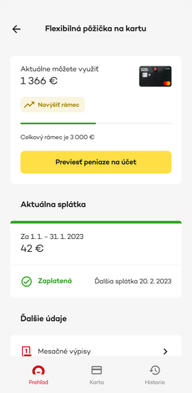TIP: Keď potrebujete viac, môžete si požiadať o navýšenie úverového rámca.